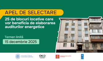 Centrul Național pentru Energie Durabilă (CNED), în parteneriat cu PNUD Moldova și cu sprijinul Danemarcei anunță lansarea unui nou apel de identificare a 25 de Asociații de Locatari care vor beneficia de asistență tehnică gratuită pentru elaborarea auditurilor energetice pentru blocurile locative administrate. Aceste audituri vor sta la baza viitoarelor proiecte de reabilitare energetică a blocurilor locative.