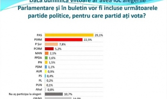 Partidul Acțiune și Solidaritate (PAS) ar obține 29,1%, Partidul Socialiștilor din Republica Moldova (PSRM) – 22,5%, Partidul „Șor” (PȘ) – 7,8%, Partidul Comuniștilor din Republica Moldova (PCRM) – 5,2%.